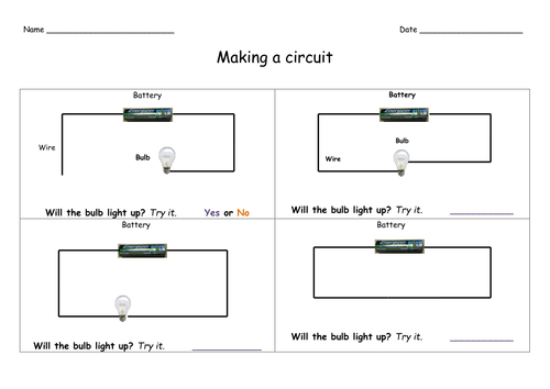 Teachers KS2 Science Name: Date: Look at each circuit diagram below. If you think the bulb or bulbs will light, put a tick in the box. If you do not think the bulb or bulbs will light, ... Fetch Here